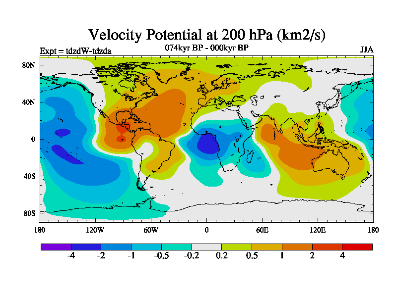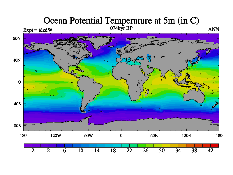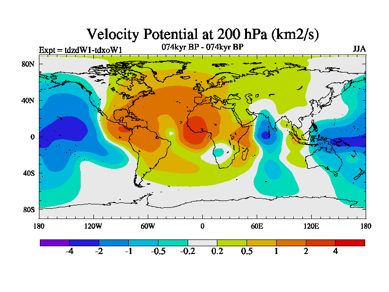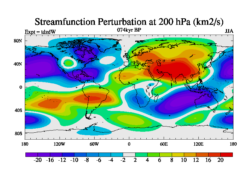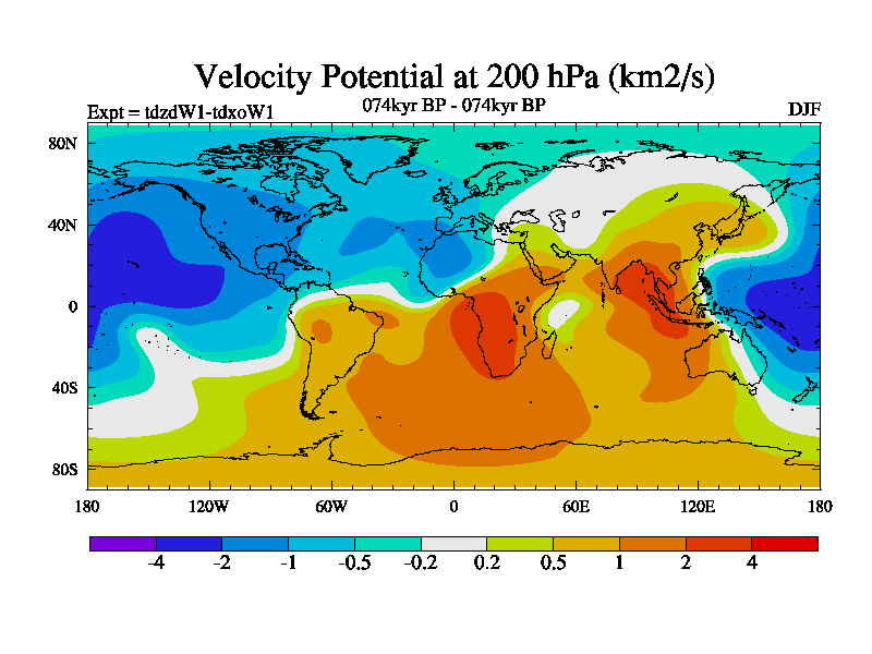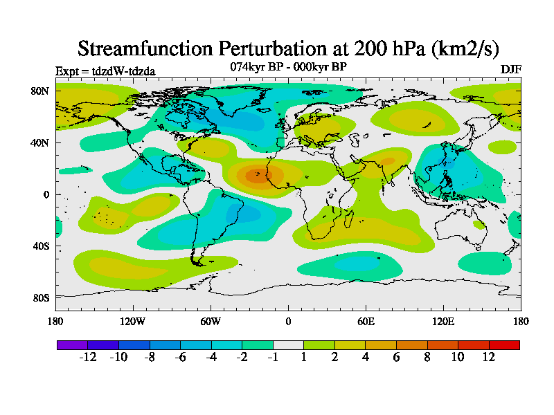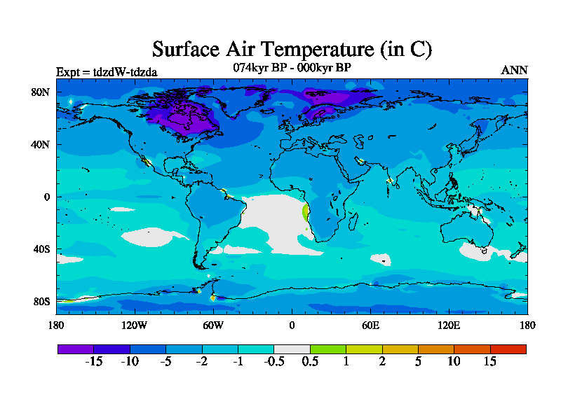 This is the 074kyr BP simulation for a new set of BBC runs using TRIFFID. Static mode, started from half way through tdxo set of simulations (new BBC static TRIFFID runs). This version includes the dark_respiration update. Vegetation is from the pre-industrial run tdwza, and CO2 is doubled over tdxo version.