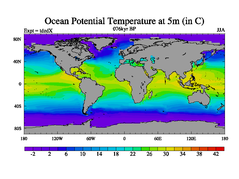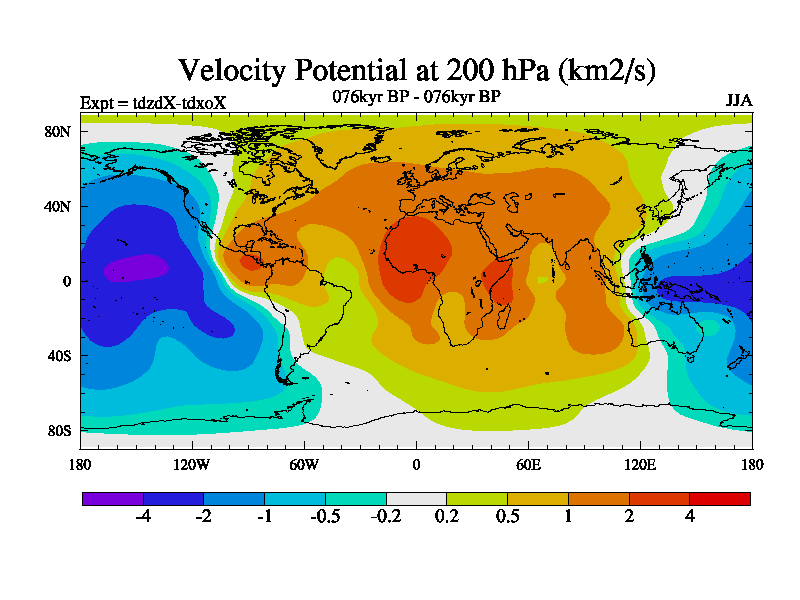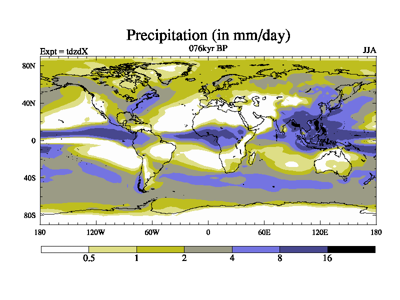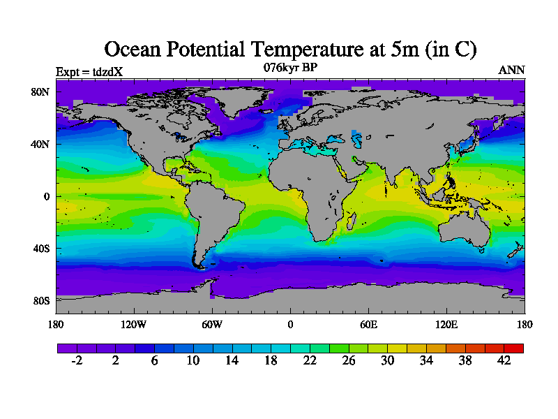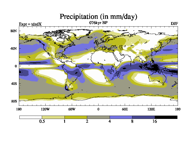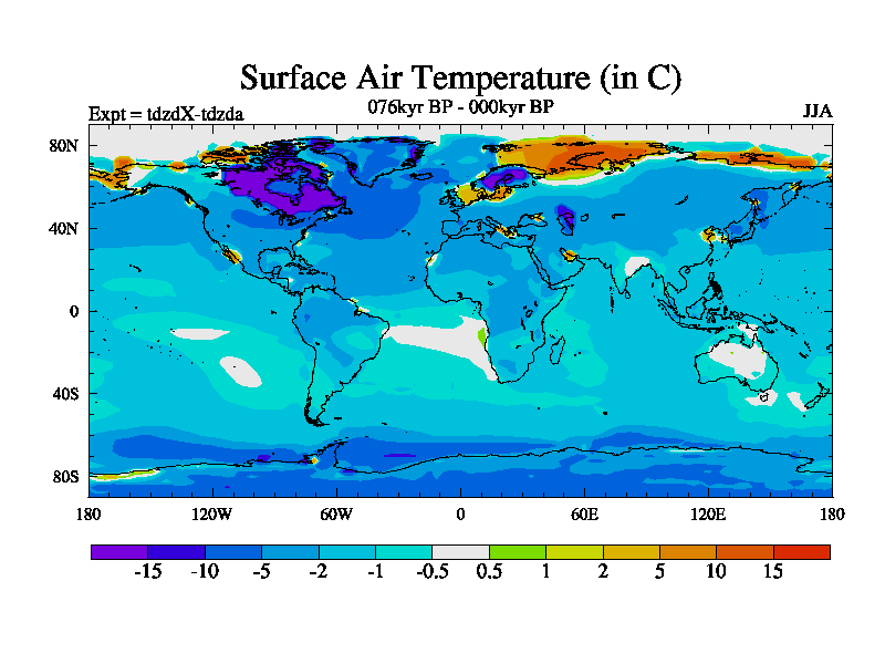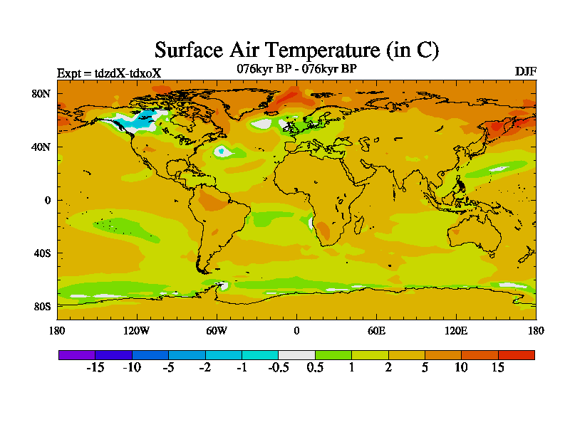 This is the 076kyr BP simulation for a new set of BBC runs using TRIFFID. Static mode, started from half way through tdxo set of simulations (new BBC static TRIFFID runs). This version includes the dark_respiration update. Vegetation is from the pre-industrial run tdwza, and CO2 is doubled over tdxo version.