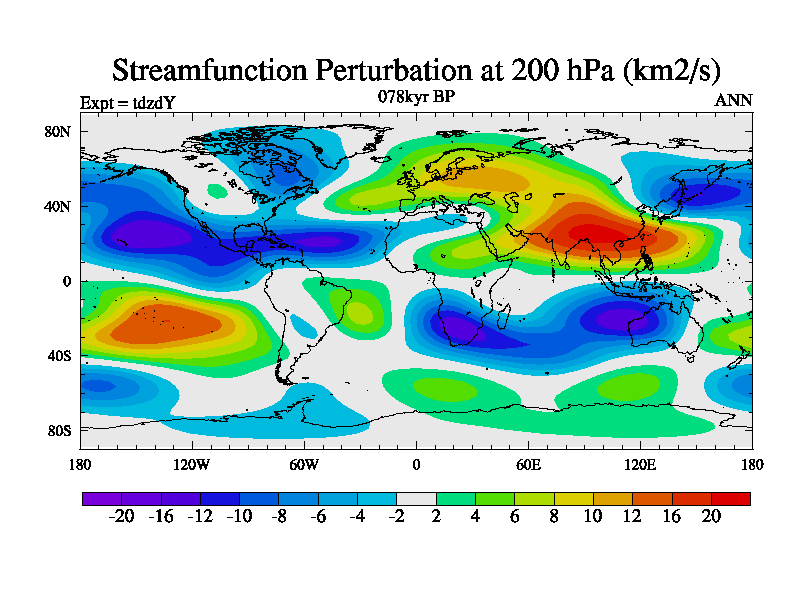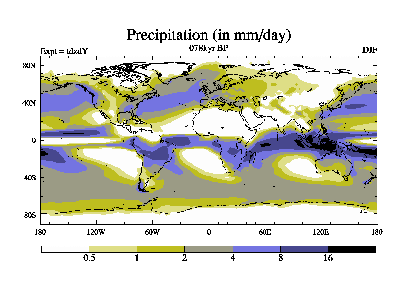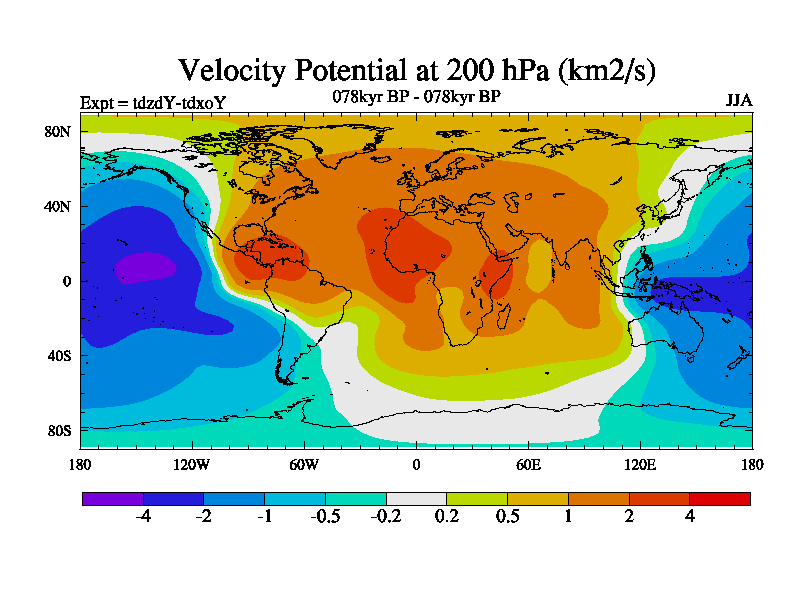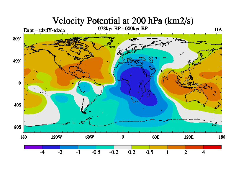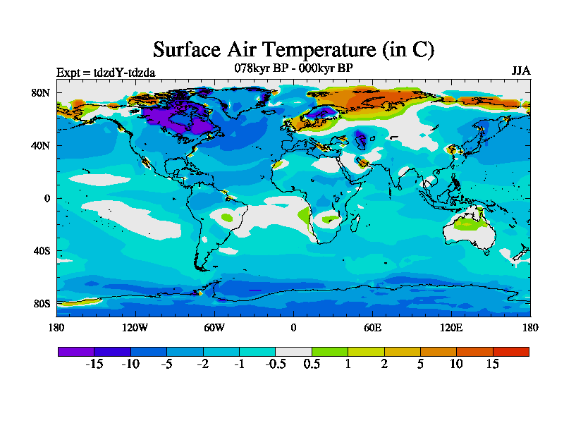 This is the 078kyr BP simulation for a new set of BBC runs using TRIFFID. Static mode, started from half way through tdxo set of simulations (new BBC static TRIFFID runs). This version includes the dark_respiration update. Vegetation is from the pre-industrial run tdwza, and CO2 is doubled over tdxo version.