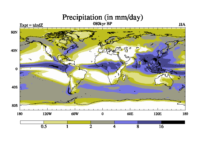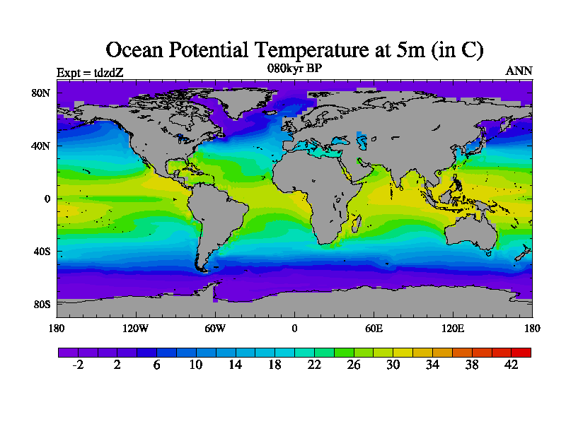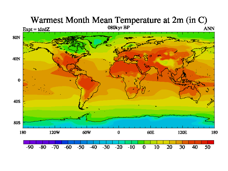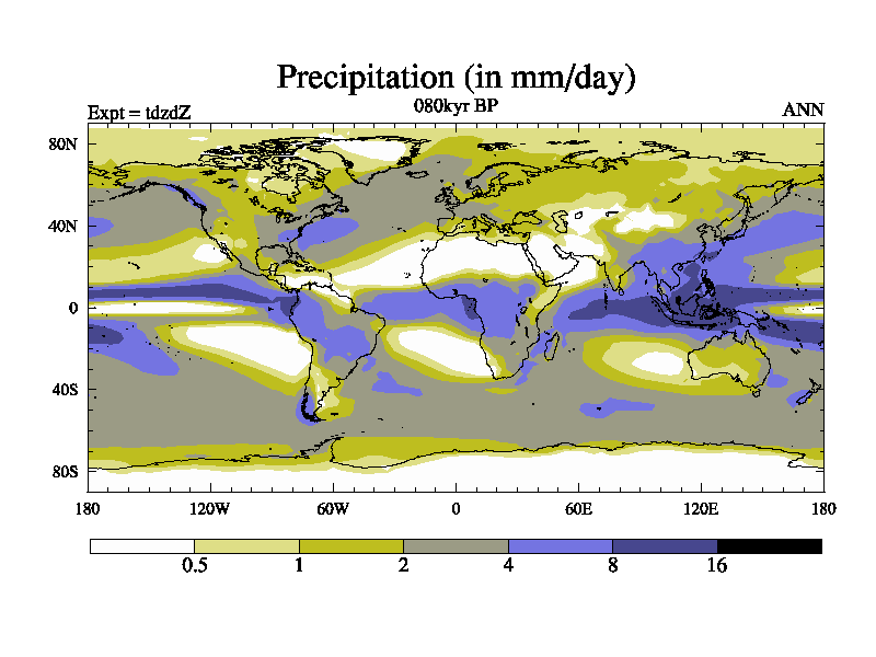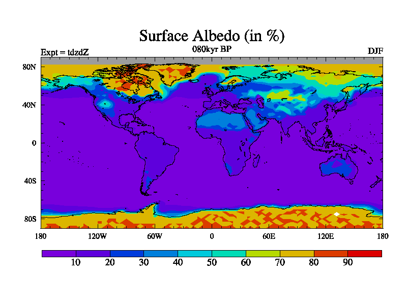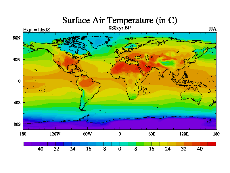 This is the 080kyr BP simulation for a new set of BBC runs using TRIFFID. Static mode, started from half way through tdxo set of simulations (new BBC static TRIFFID runs). This version includes the dark_respiration update. Vegetation is from the pre-industrial run tdwza, and CO2 is doubled over tdxo version.