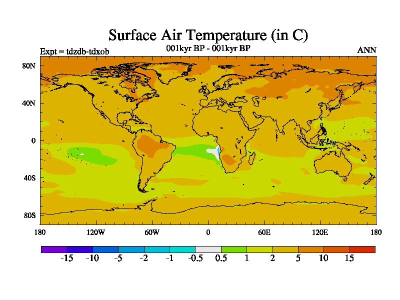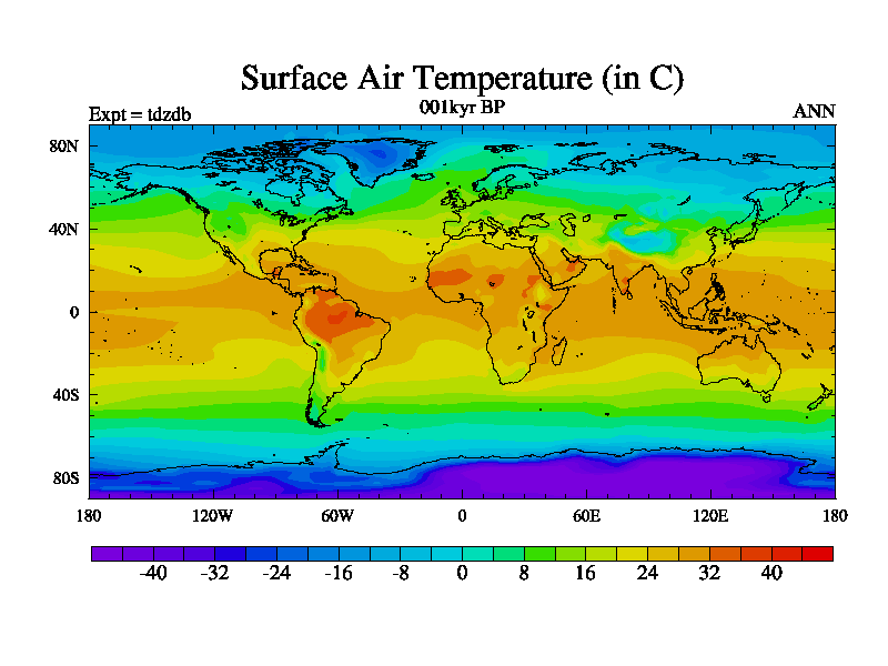 This is the 001kyr BP simulation for a new set of BBC runs using TRIFFID. Static mode, started from half way through tdxo set of simulations (new BBC static TRIFFID runs). This version includes the dark_respiration update. Vegetation is from the pre-industrial run tdwza, and CO2 is doubled over tdxo version.