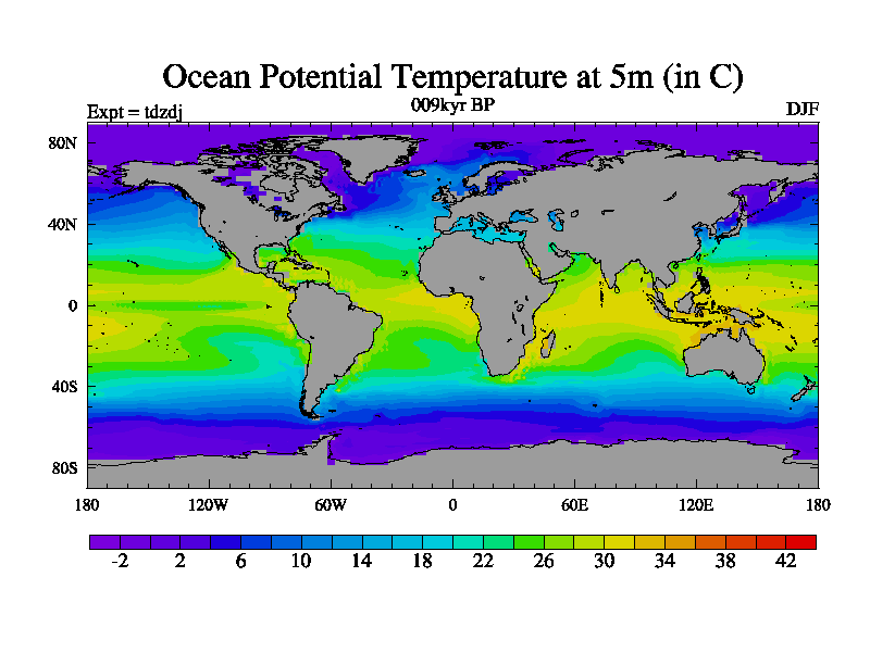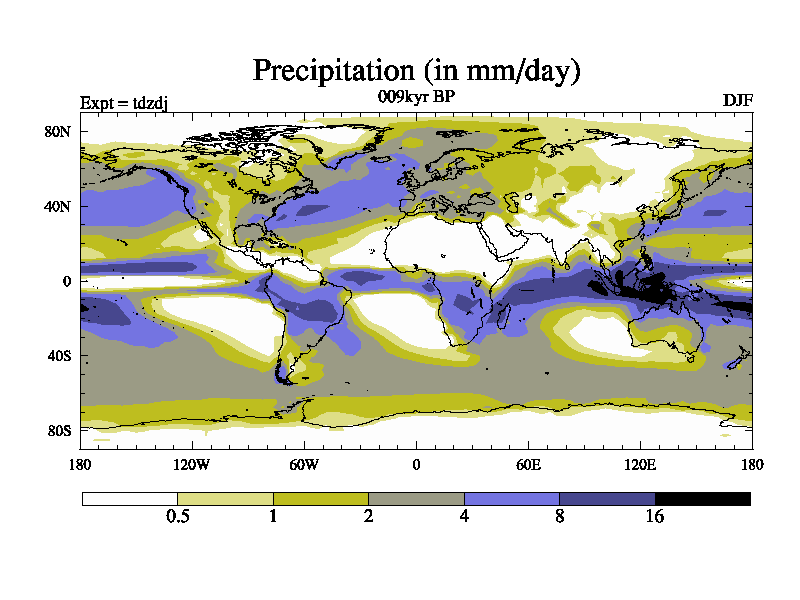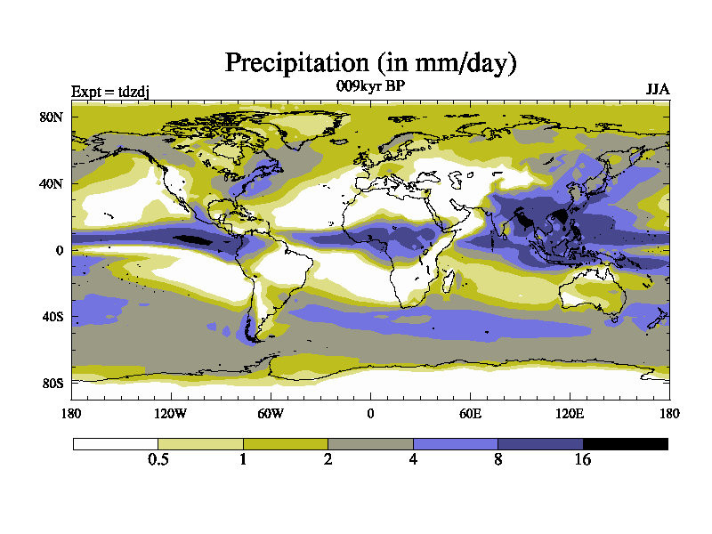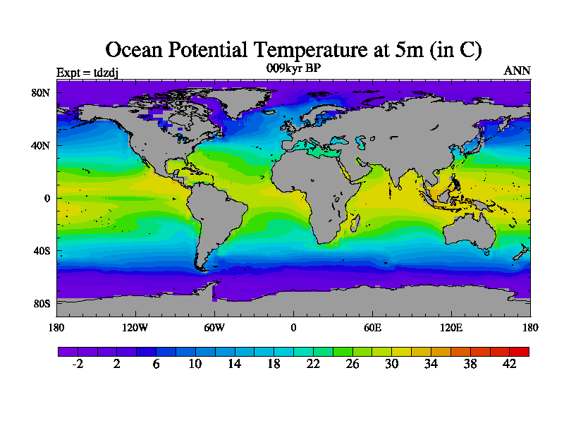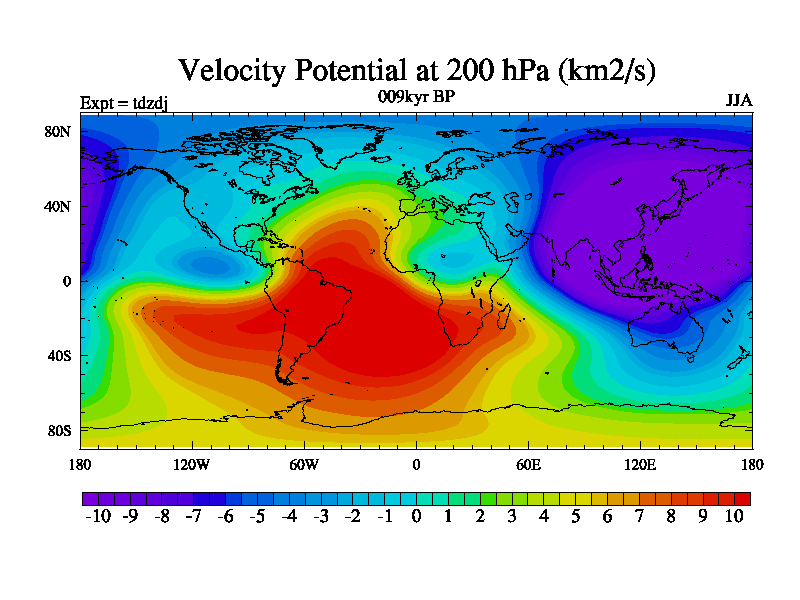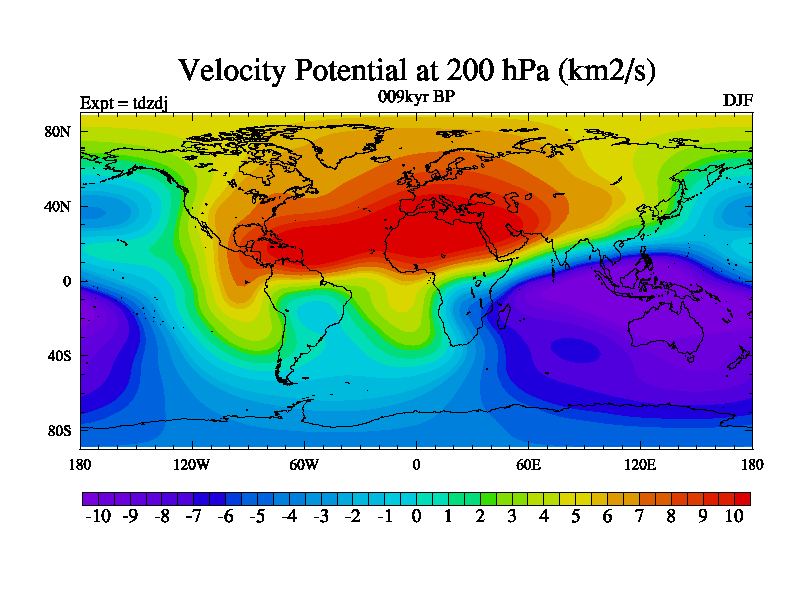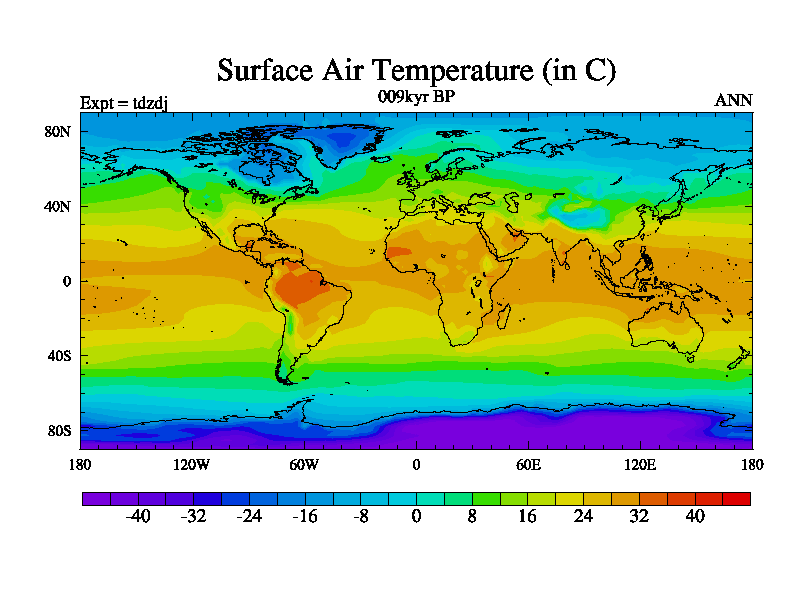 This is the 009kyr BP simulation for a new set of BBC runs using TRIFFID. Static mode, started from half way through tdxo set of simulations (new BBC static TRIFFID runs). This version includes the dark_respiration update. Vegetation is from the pre-industrial run tdwza, and CO2 is doubled over tdxo version.