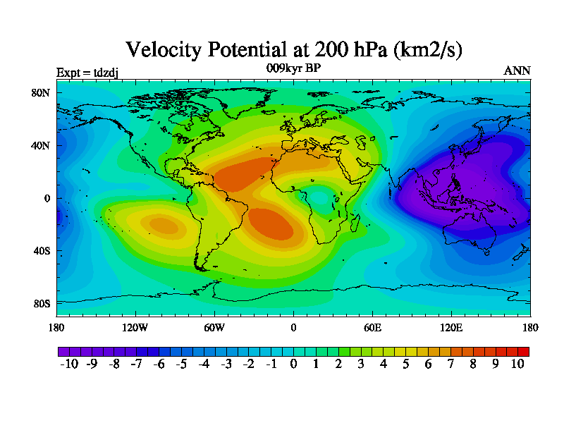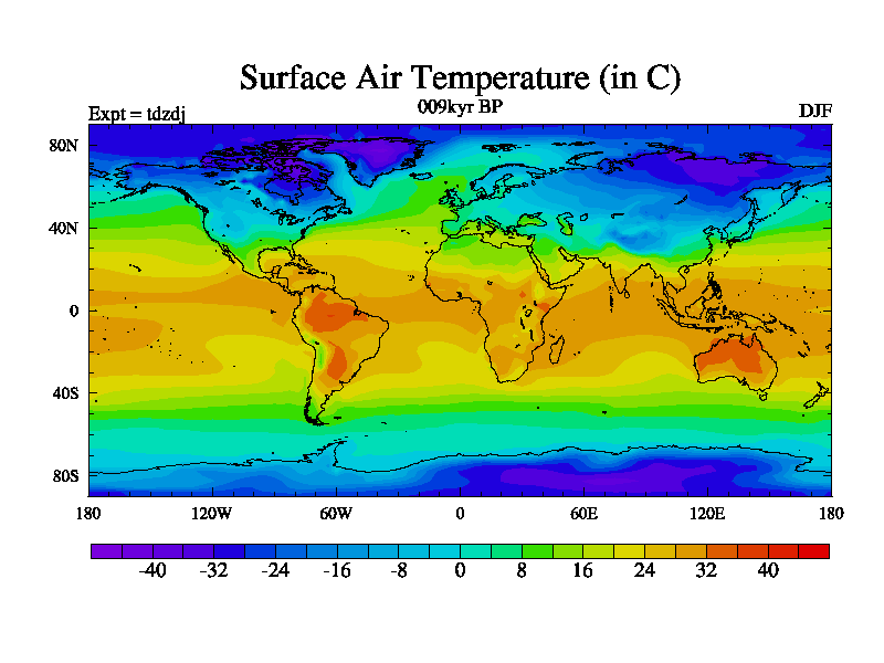 This is the 009kyr BP simulation for a new set of BBC runs using TRIFFID. Static mode, started from half way through tdxo set of simulations (new BBC static TRIFFID runs). This version includes the dark_respiration update. Vegetation is from the pre-industrial run tdwza, and CO2 is doubled over tdxo version.