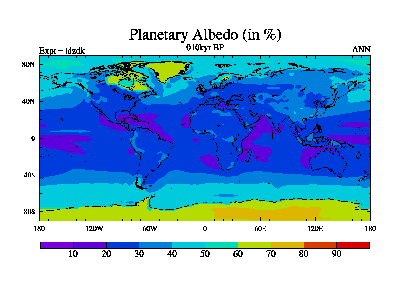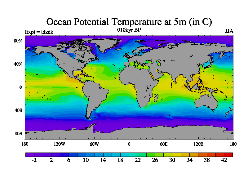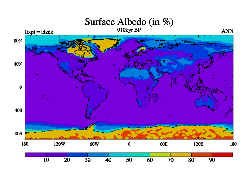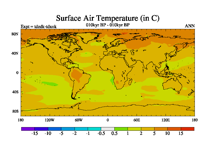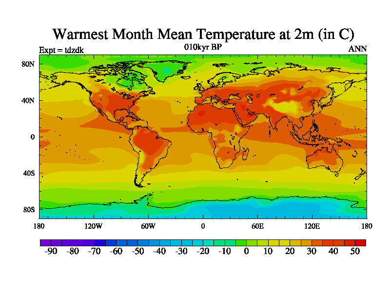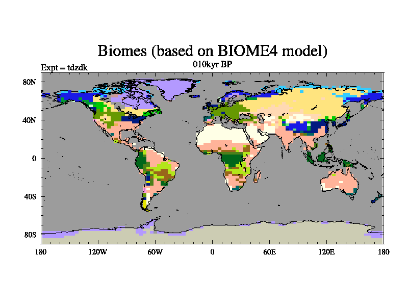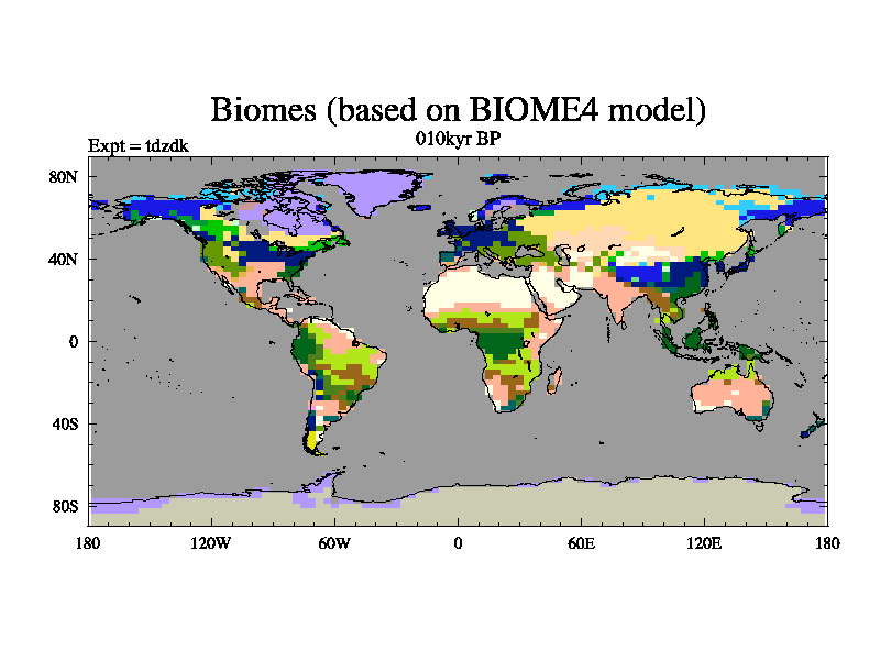 This is the 010kyr BP simulation for a new set of BBC runs using TRIFFID. Static mode, started from half way through tdxo set of simulations (new BBC static TRIFFID runs). This version includes the dark_respiration update. Vegetation is from the pre-industrial run tdwza, and CO2 is doubled over tdxo version.