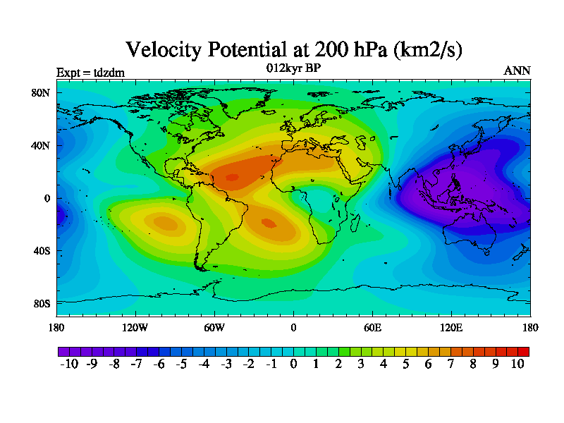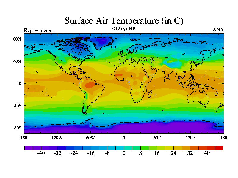 This is the 012kyr BP simulation for a new set of BBC runs using TRIFFID. Static mode, started from half way through tdxo set of simulations (new BBC static TRIFFID runs). This version includes the dark_respiration update. Vegetation is from the pre-industrial run tdwza, and CO2 is doubled over tdxo version.