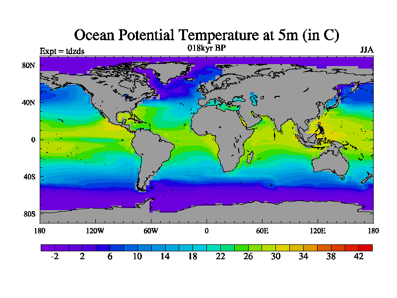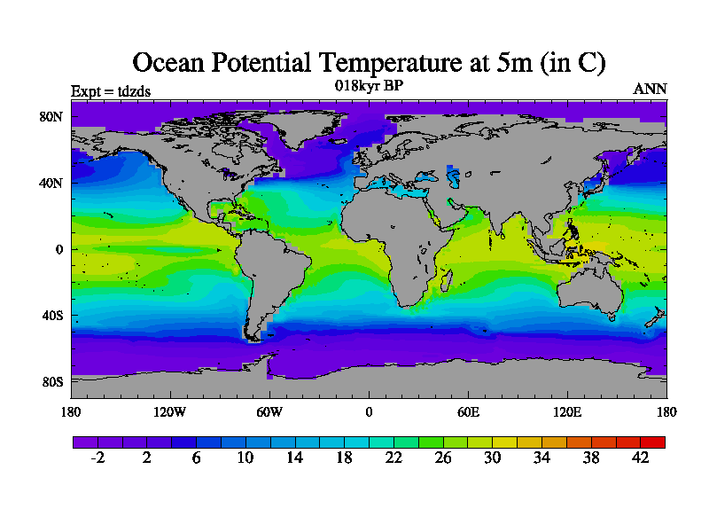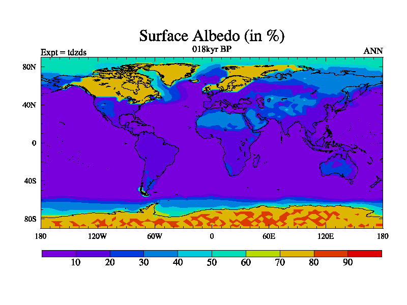 This is the 018kyr BP simulation for a new set of BBC runs using TRIFFID. Static mode, started from half way through tdxo set of simulations (new BBC static TRIFFID runs). This version includes the dark_respiration update. Vegetation is from the pre-industrial run tdwza, and CO2 is doubled over tdxo version.