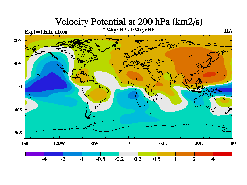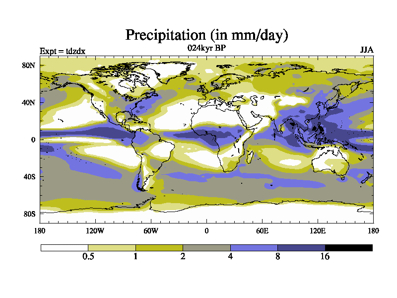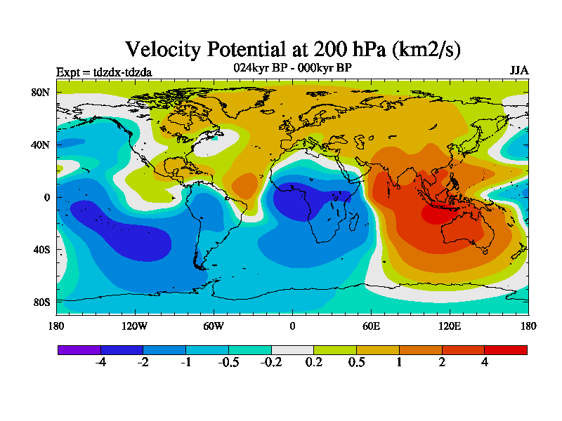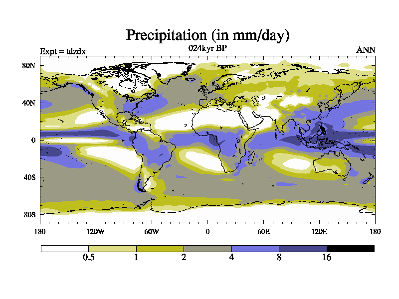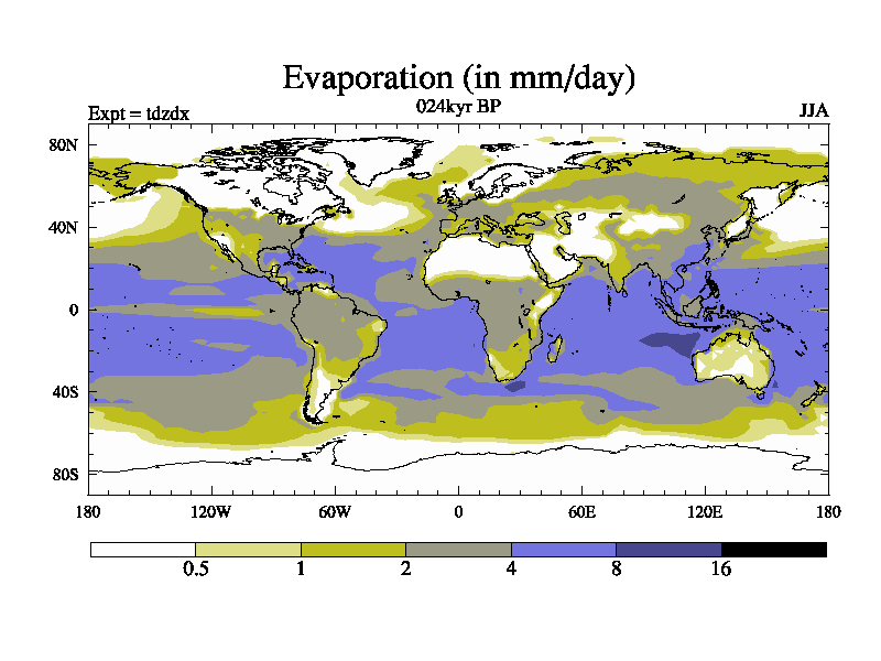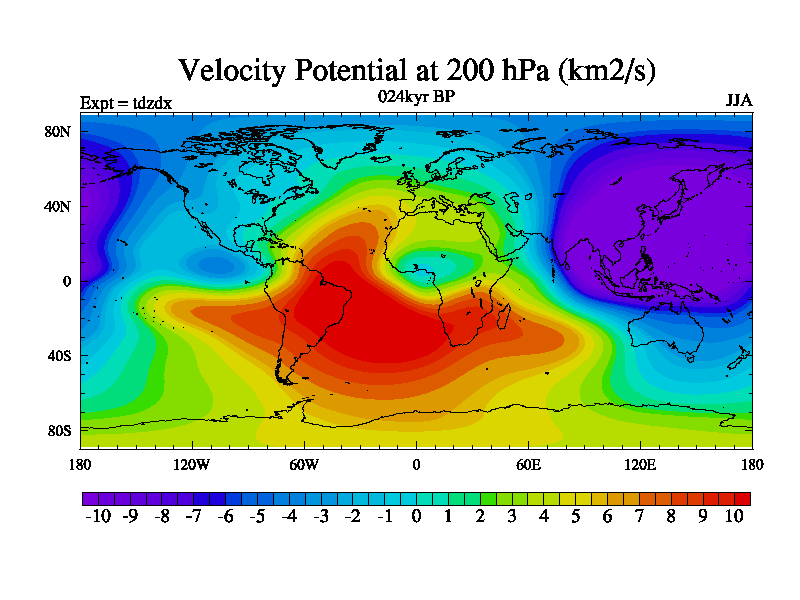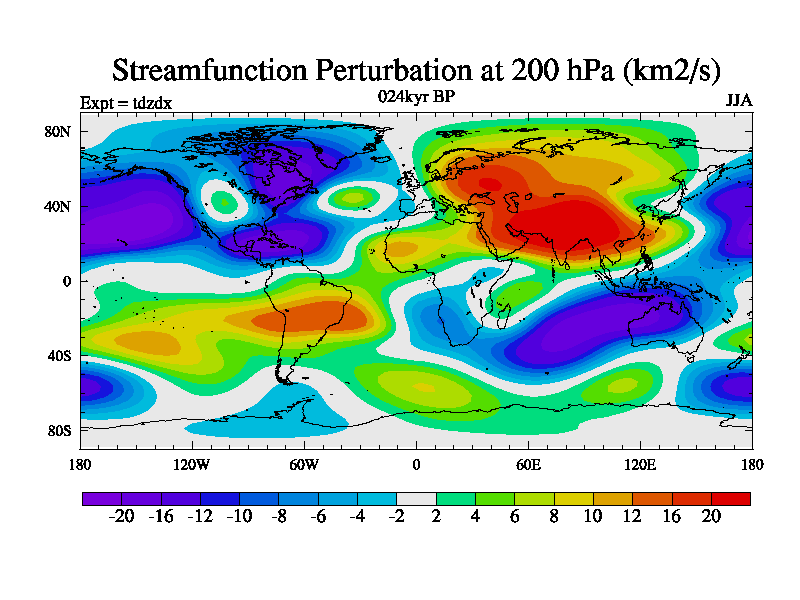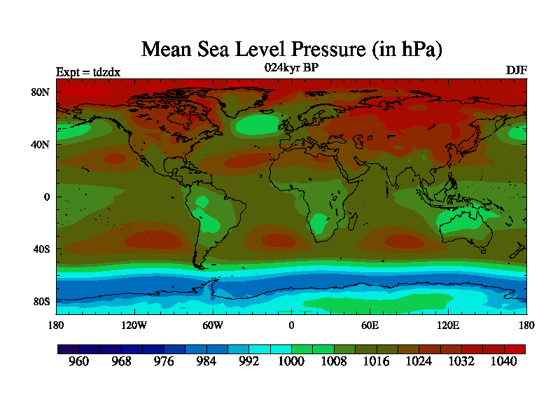 This is the 024kyr BP simulation for a new set of BBC runs using TRIFFID. Static mode, started from half way through tdxo set of simulations (new BBC static TRIFFID runs). This version includes the dark_respiration update. Vegetation is from the pre-industrial run tdwza, and CO2 is doubled over tdxo version.