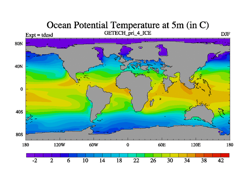 This is the Priabonian version of Phase 4 of the GETECH simulations. Continuation of 'tdkag' Phase 1 2 and 'tdlck' phase 3 with baratropic stream function turned on. Rupelian (full AIS) ice 4xCO2 and Antarctic island