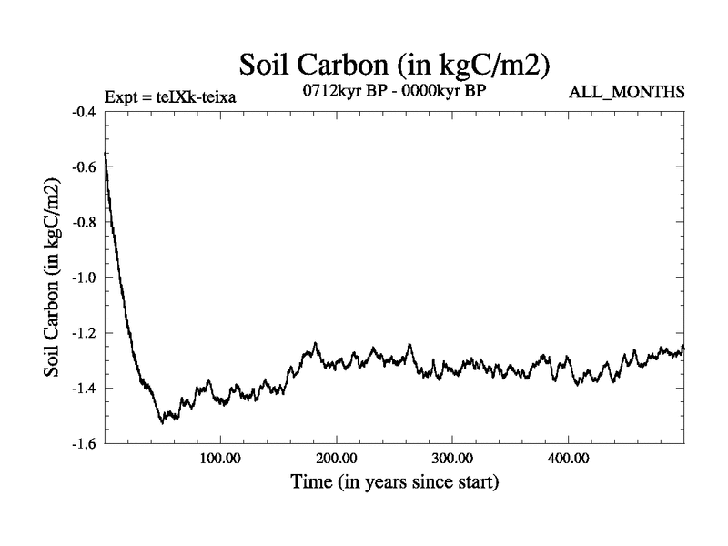 This is the pre-industrial simulation for a new set of BBC long runs using TRIFFID. dynamic mode, started from teii set of simulations (new BBC equilibrium TRIFFID runs). This version includes the dark_respiration update.