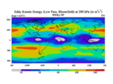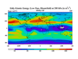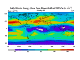 Low Pass Eddy Kinetic Energy at 200 hPa