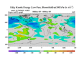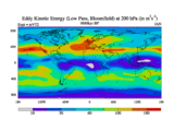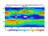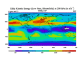 Low Pass Eddy Kinetic Energy at 200 hPa