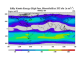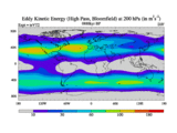 High Pass Eddy Kinetic Energy at 200 hPa