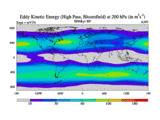 High Pass Eddy Kinetic Energy at 200 hPa
