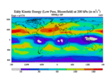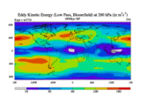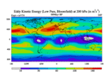 Low Pass Eddy Kinetic Energy at 200 hPa