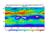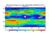 Low Pass Eddy Kinetic Energy at 200 hPa