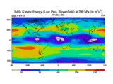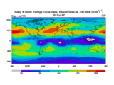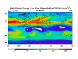 Low Pass Eddy Kinetic Energy at 200 hPa