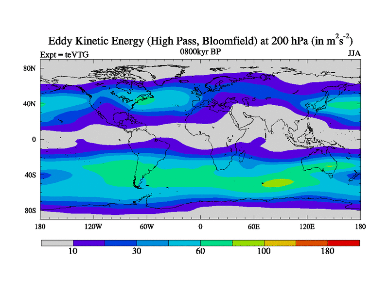 Low Pass Eddy Kinetic Energy at 200 hPa