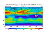 Low Pass Eddy Kinetic Energy at 200 hPa