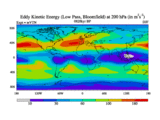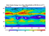 Low Pass Eddy Kinetic Energy at 200 hPa