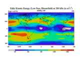 Low Pass Eddy Kinetic Energy at 200 hPa