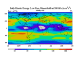 Low Pass Eddy Kinetic Energy at 200 hPa