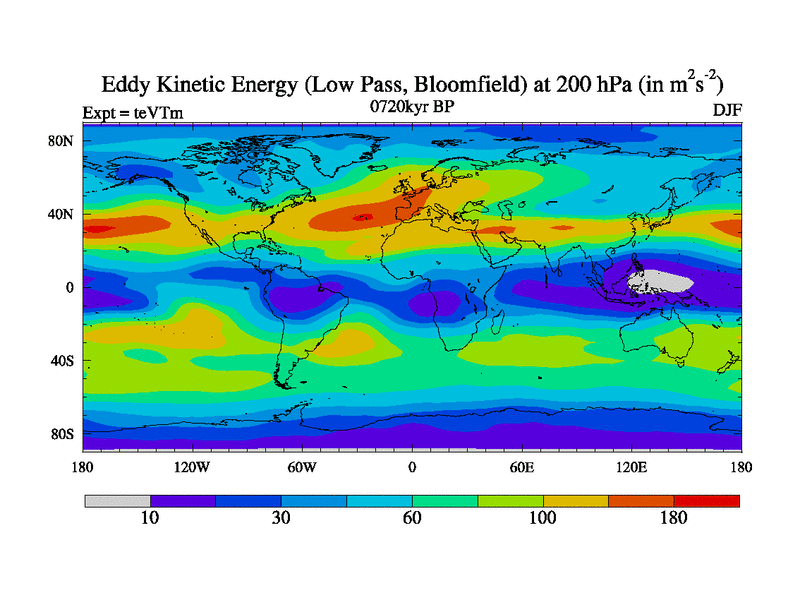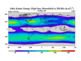 Low Pass Eddy Kinetic Energy at 200 hPa
