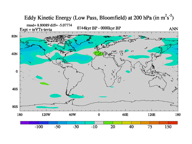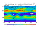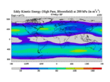 Low Pass Eddy Kinetic Energy at 200 hPa