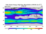Low Pass Eddy Kinetic Energy at 200 hPa