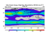 Low Pass Eddy Kinetic Energy at 200 hPa
