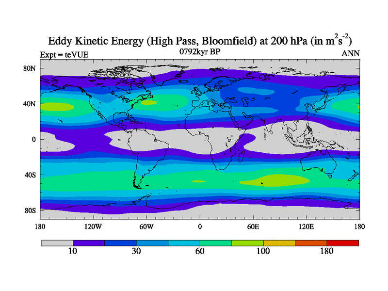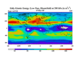 Low Pass Eddy Kinetic Energy at 200 hPa