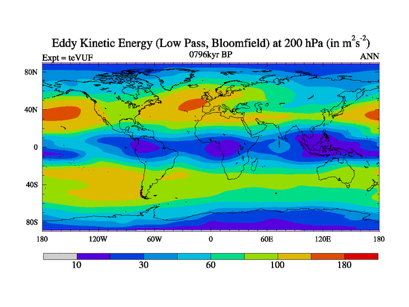 Low Pass Eddy Kinetic Energy at 200 hPa