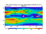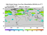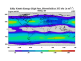 Low Pass Eddy Kinetic Energy at 200 hPa