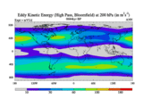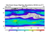High Pass Eddy Kinetic Energy at 200 hPa
