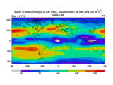 Low Pass Eddy Kinetic Energy at 200 hPa