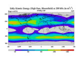Low Pass Eddy Kinetic Energy at 200 hPa