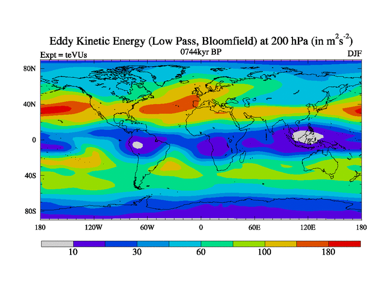 Low Pass Eddy Kinetic Energy at 200 hPa