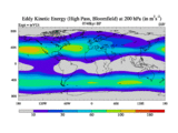High Pass Eddy Kinetic Energy at 200 hPa