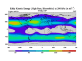 Low Pass Eddy Kinetic Energy at 200 hPa