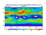 Low Pass Eddy Kinetic Energy at 200 hPa