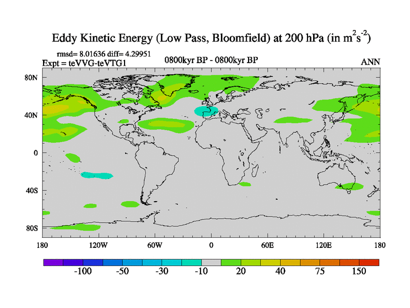 Low Pass Eddy Kinetic Energy at 200 hPa