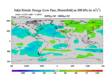 Low Pass Eddy Kinetic Energy at 200 hPa