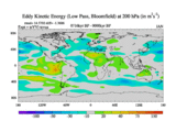 Low Pass Eddy Kinetic Energy at 200 hPa