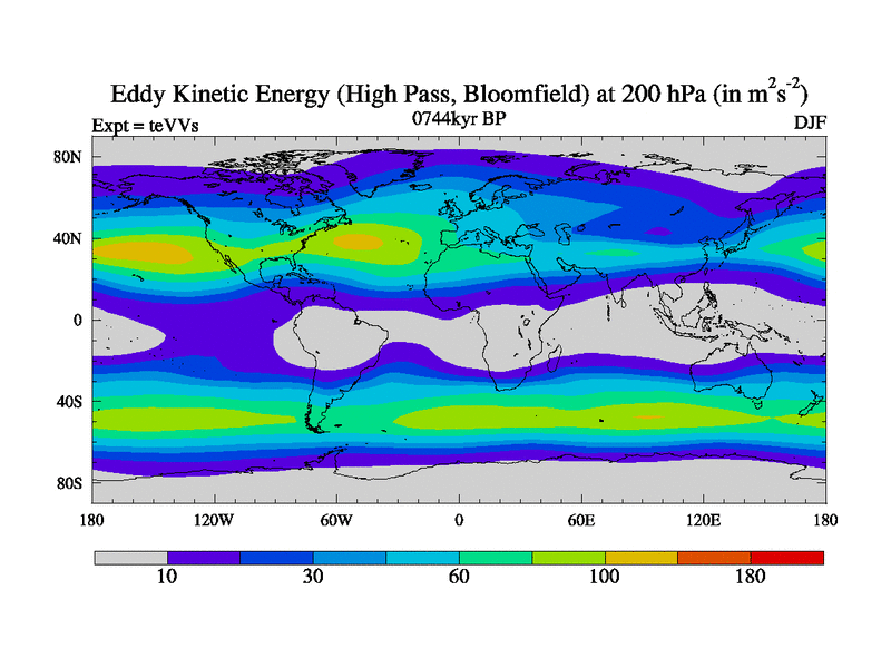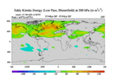 Low Pass Eddy Kinetic Energy at 200 hPa