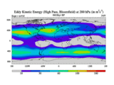 Low Pass Eddy Kinetic Energy at 200 hPa
