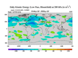 Low Pass Eddy Kinetic Energy at 200 hPa