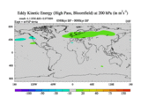 Low Pass Eddy Kinetic Energy at 200 hPa
