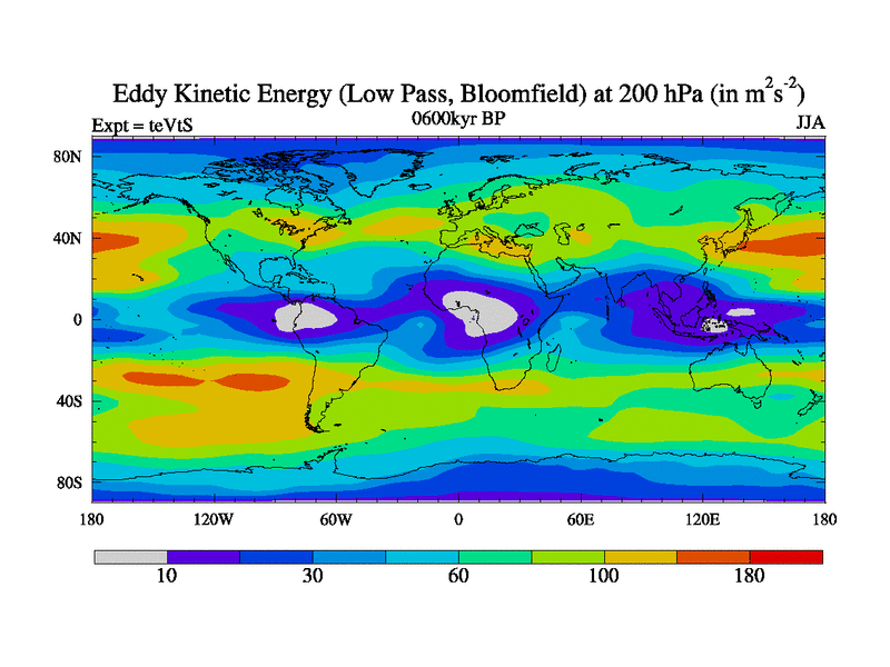 Low Pass Eddy Kinetic Energy at 200 hPa