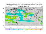 Low Pass Eddy Kinetic Energy at 200 hPa