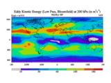 Low Pass Eddy Kinetic Energy at 200 hPa