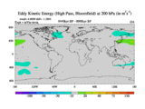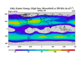 Low Pass Eddy Kinetic Energy at 200 hPa